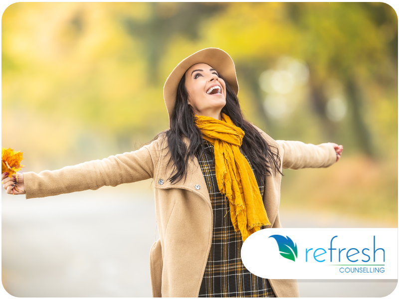 As we wave goodbye to summer and usher in the crisp fall breeze, there’s much to look forward to. From the delightful pumpkin spice latte (A Favorite of many of our Refresh Counselling Team Members) to stunning foliage, autumn is a beloved season for many. However, did you know that autumn offers numerous mental health benefits as well? As the leaves change their colors and the temperatures drop, autumn has proven to cultivate a happier frame of mind. Let’s explore three ways autumn promotes a happier frame of mind.